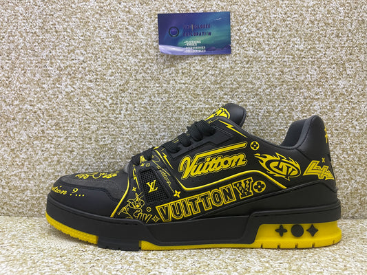Louis Vuitton LV Trainer Black Yellow Graffiti 8LV/9.5 Men “Preowned”