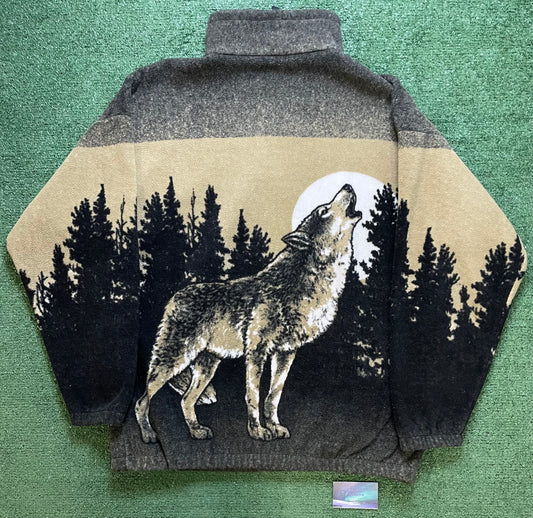 Vintage 1990s Washington wolves all over print quarter zip