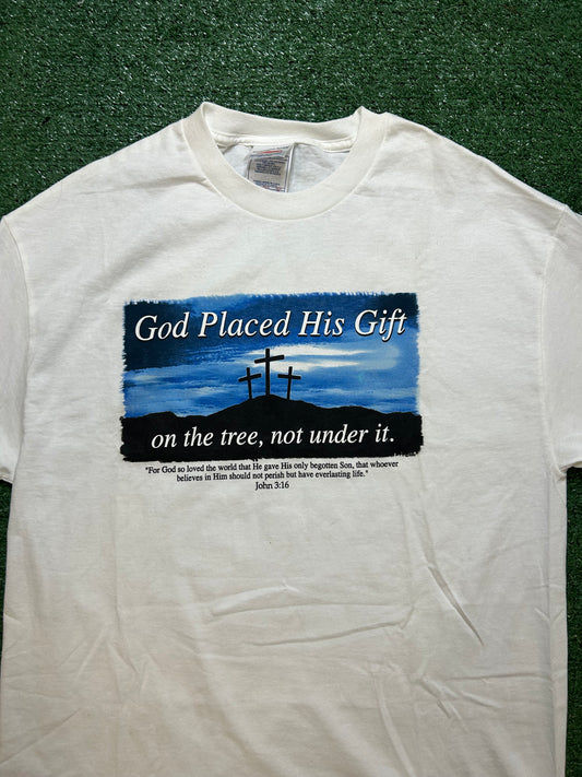 Vintage 1990s Christian God placed his gift on the tree, not under it