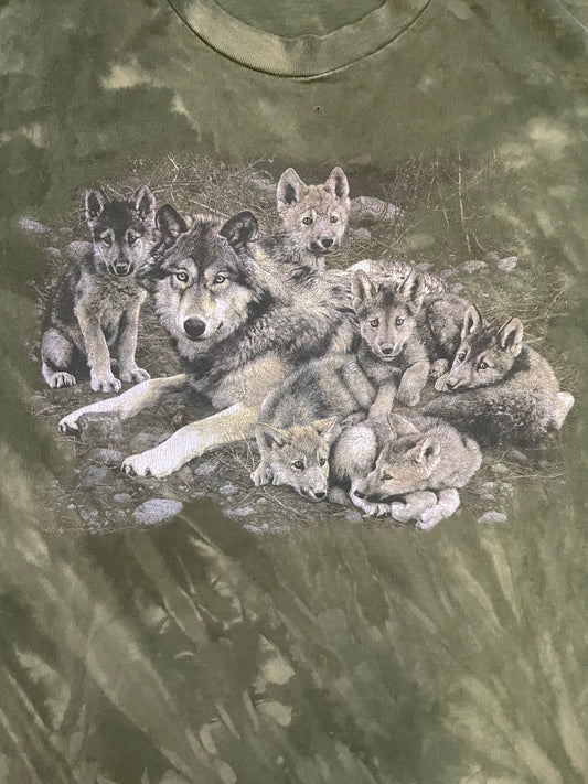 Sold outVintage 1990s wolf family green tee
