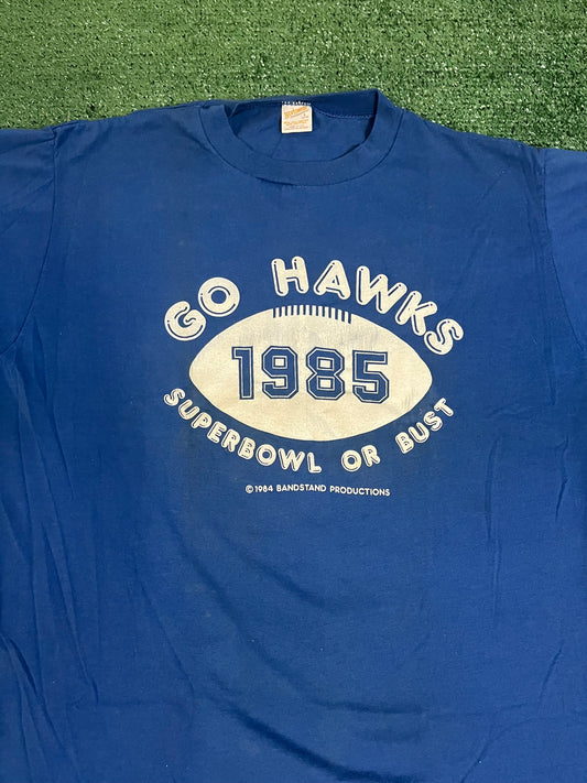 Vintage 1985 Seattle Seahawks Go hawks Superbowl or bust tee