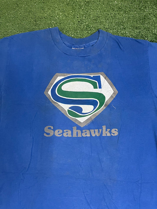 Vintage 1985 Seattle Seahawks Superman style tee