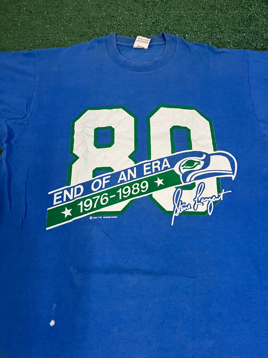Vintage 1989 Seattle Seahawks Steve Largent End of An Era! NFL Football Tee