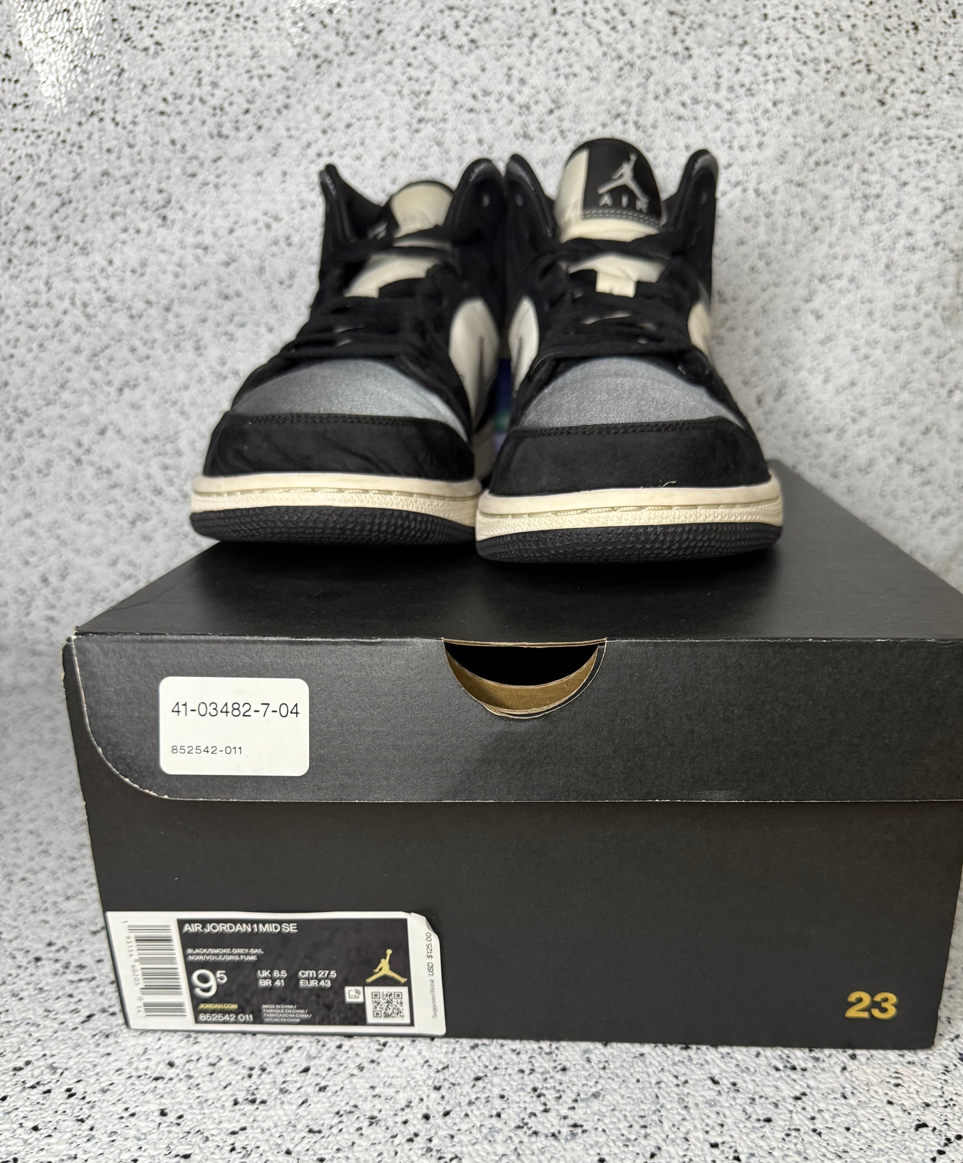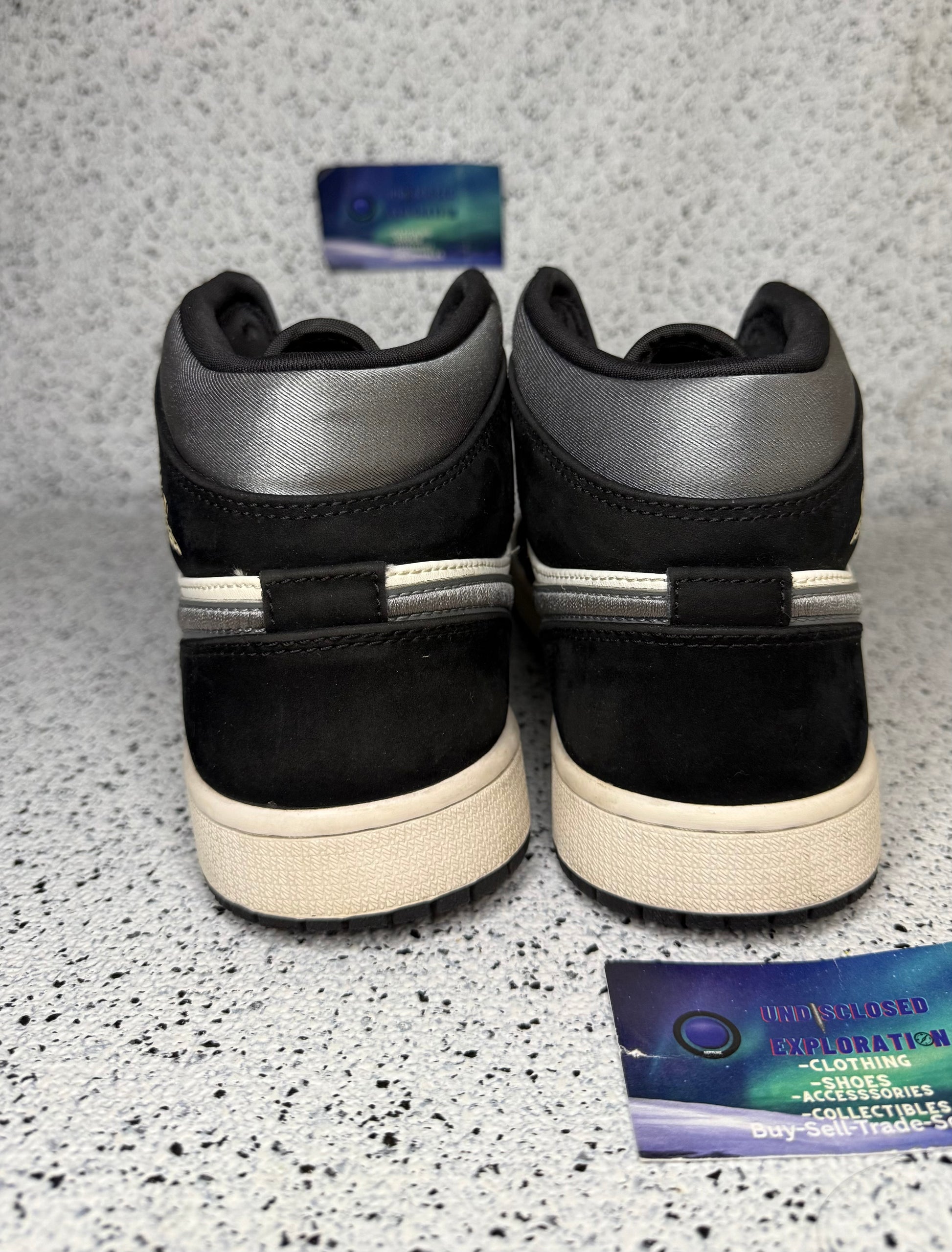 Jordan 1 Mid Satin Grey Toe 9.5 Men/11 Women “Preowned”