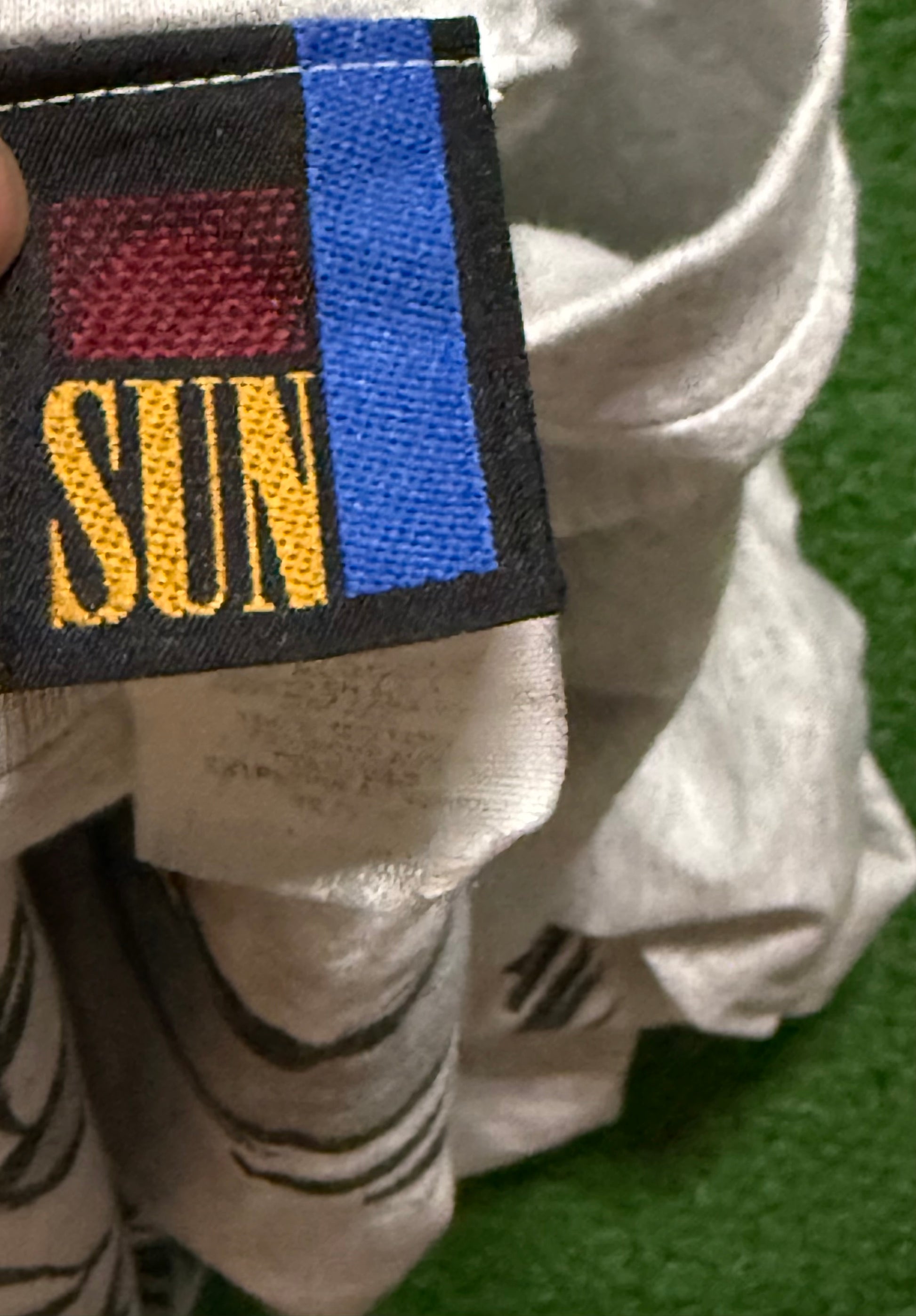 Shirt fits like an X-Large and is in great condition. From top to bottom it measures 31 inches and 25 inches armpit to armpit.
