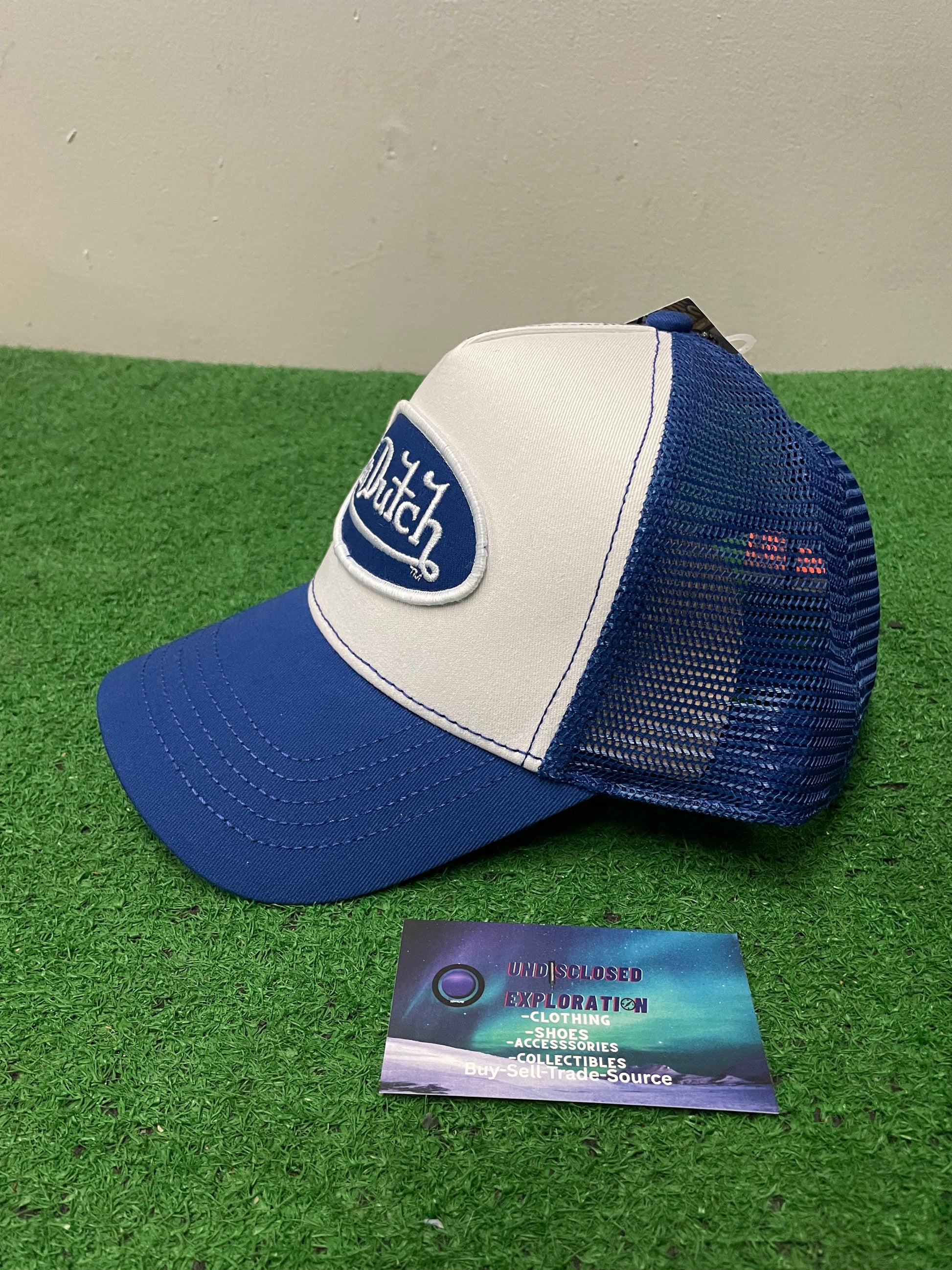 Von Dutch blue and white staple hat